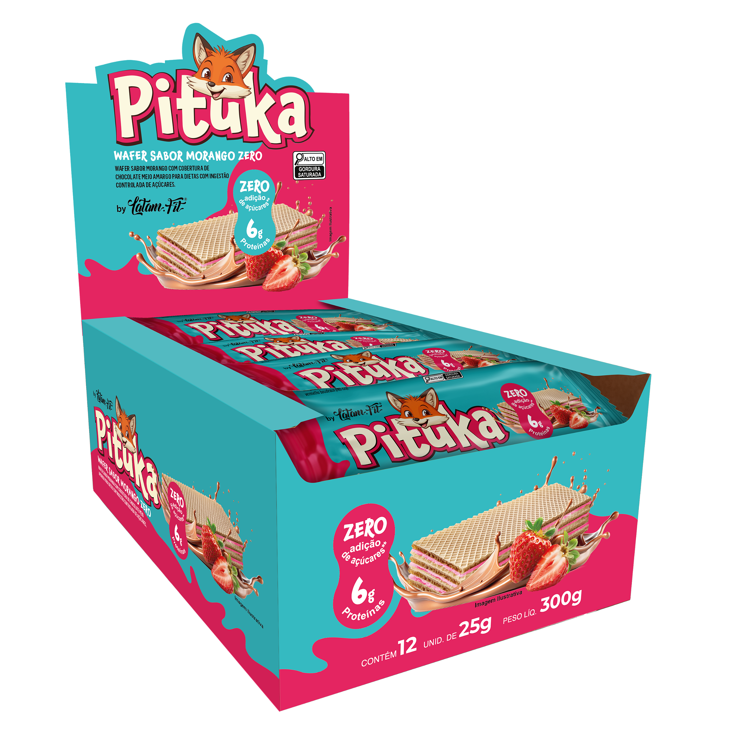 Wafer de Morango + Proteína coberto com Chocolate 300g (12 uni. de 25g cada) - Latam Protein